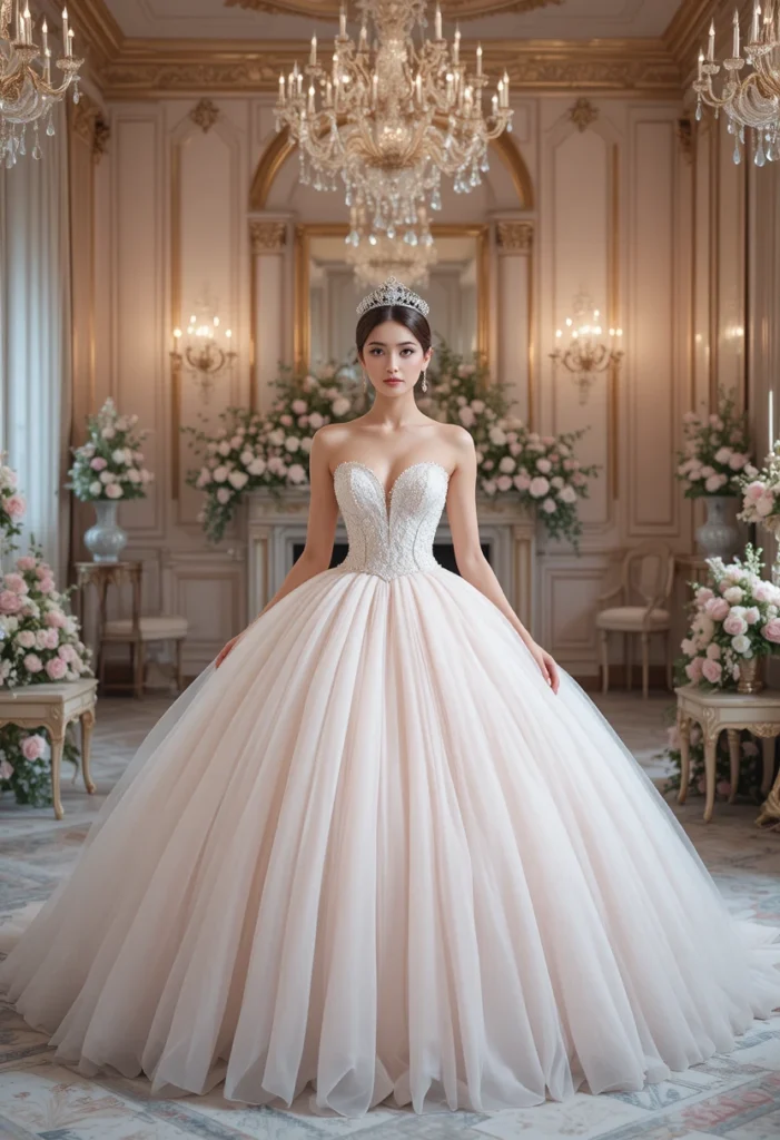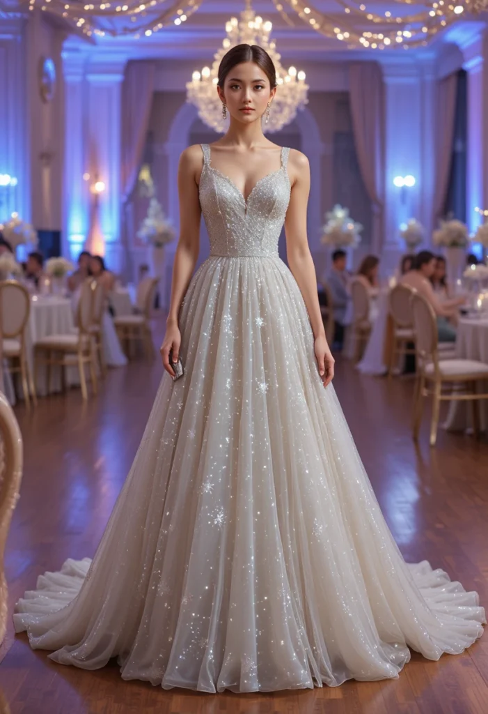 Make an impression with an embellished tulle dress. Layers of soft tulle combined with subtle embellishments like beads or sequins create a romantic, fairy-tale vibe. Perfect for formal weddings or evening events.