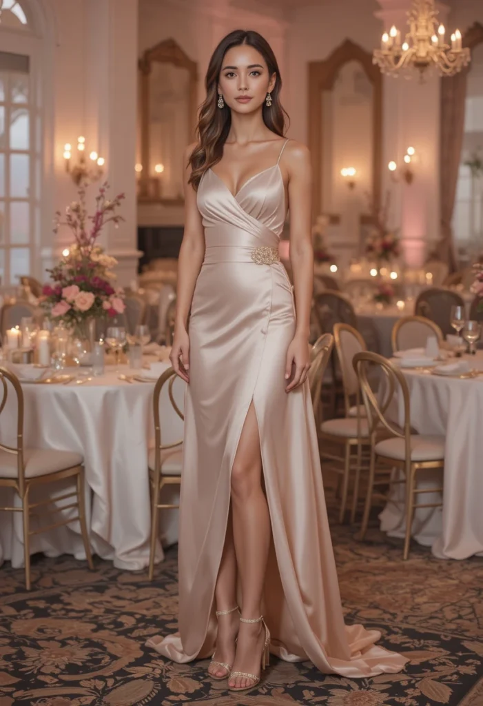 Pair with strappy heels or classic pumps. Keep accessories minimal—perhaps just studs or a small bracelet—so the dress remains the focal point of your stunning look.
