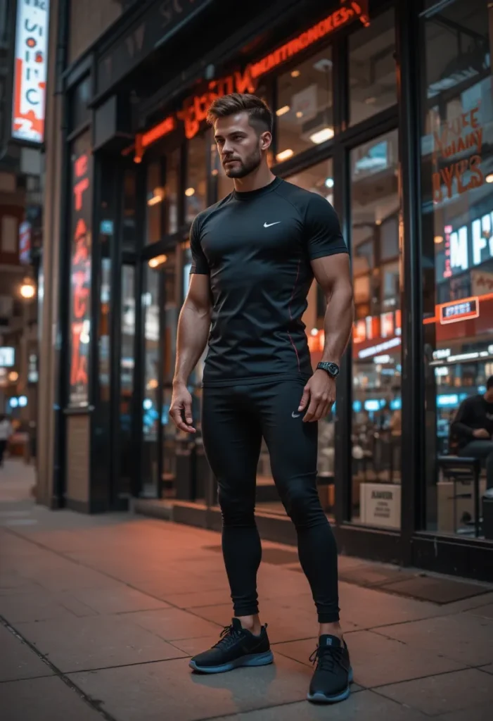 This combo is perfect for days when you want to look strong and confident even after training. It works for weight sessions, outdoor runs, or casual stops like grabbing a drink or meeting someone right after the gym. It’s performance-first but still stylish.
