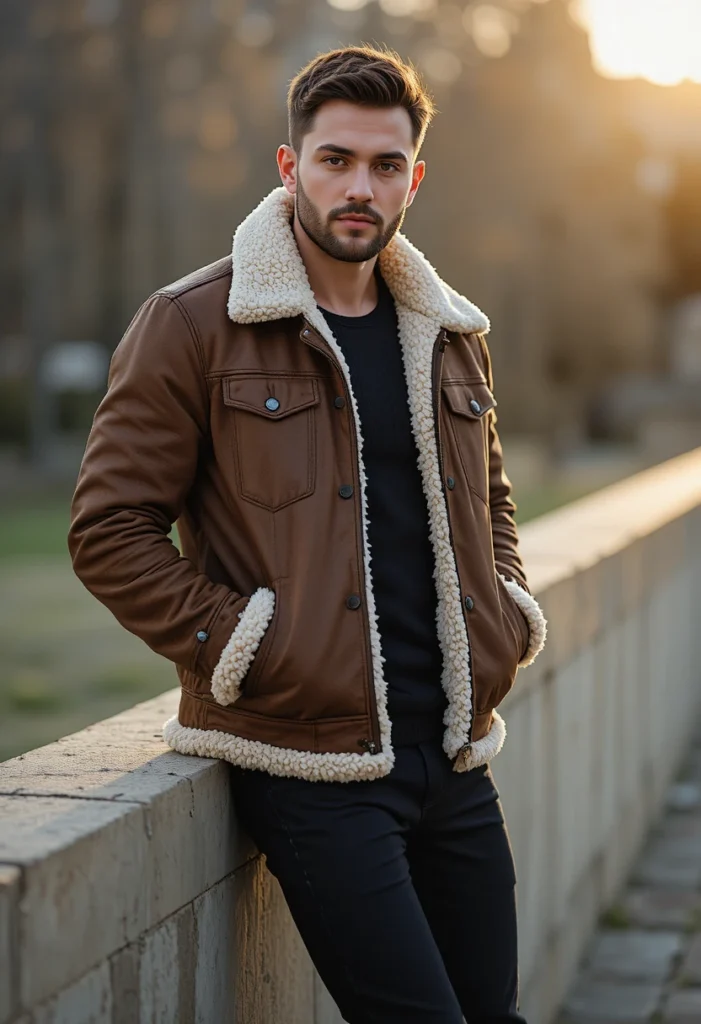 Shearling jackets are a winter essential that never go out of style. The soft lining keeps you warm while the exterior exudes confidence.