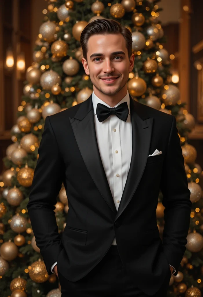 To keep the look polished, pair this outfit with black patent leather shoes and a pocket square in a festive color like red or green. The pocket square adds just a touch of holiday cheer without being too flashy, making it ideal for any elegant occasion. The classic black tuxedo is a go-to choice for men who want to impress with minimal effort.