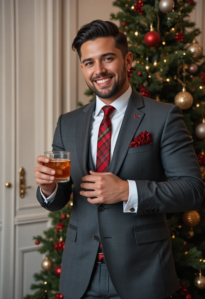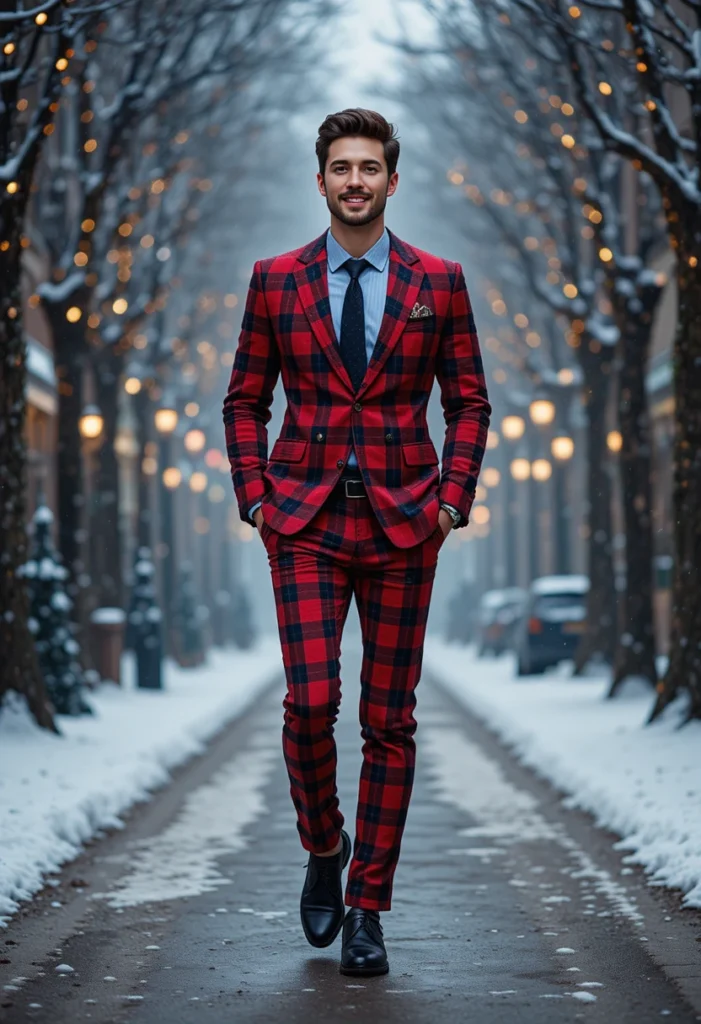 If you’re looking for a more modern and playful take on Christmas formal outfits for men, a plaid suit is a great choice. Plaid adds personality and interest to your formal look without going overboard. For a holiday event, go for a classic tartan plaid or a subtle check in shades of red, green, or navy, which adds a festive touch without being too bold.