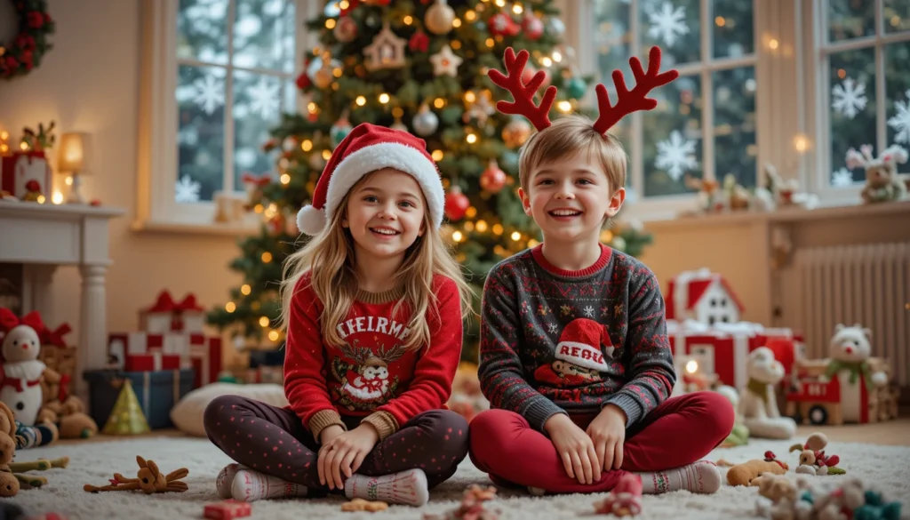 These looks are playful and comfortable, perfect for capturing candid family moments during the holiday season.