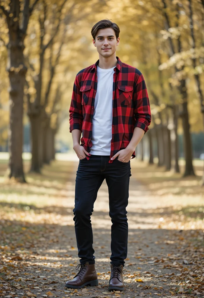 A flannel shirt layered over a white tee creates a warm, friendly look that girls often find very approachable. The mix of colors from the flannel and the simple white tee gives a clean but relaxed vibe. Blue jeans complete the outfit with a classic touch that never goes wrong.