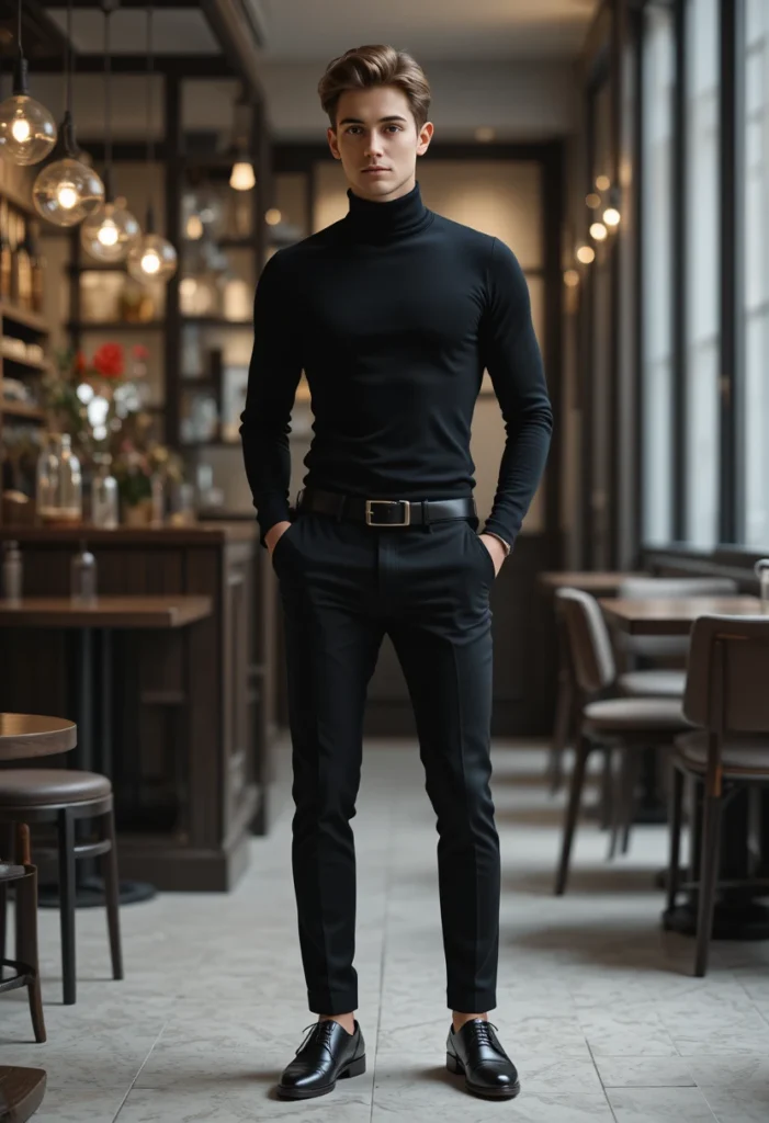 A black turtleneck with slim-fit pants gives a clean, classy look that instantly feels mature and confident. Girls often find this style attractive because it shows quiet strength and calm energy. It’s simple but has a strong impact.