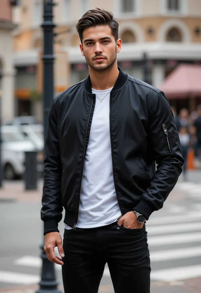 A bomber jacket always adds a cool edge to your look. When you pair it with a basic tee and black jeans, it creates a smooth, bold style that catches attention in a good way. Girls often love this because it feels confident and modern.