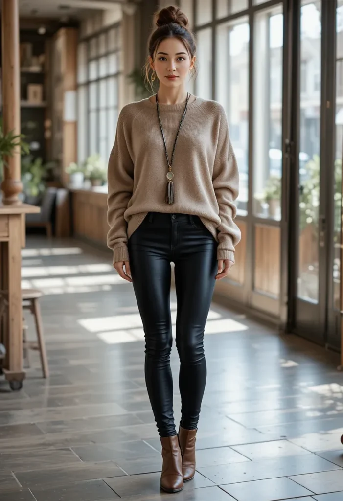 Look for high-waisted styles that flatter your shape and provide the ultimate comfort for all-day wear. Pair them with oversized shirts, blouses, or a long cardigan for a laid-back but stylish outfit. For a more polished look, you can even pair them with a blazer and boots.