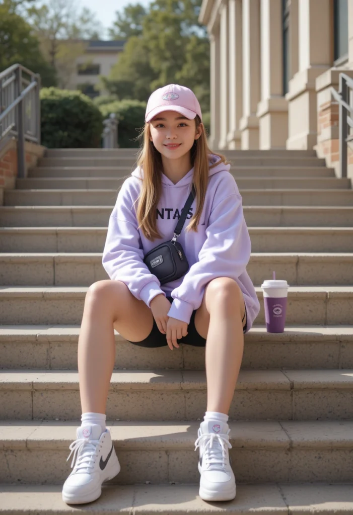 The sporty-girl aesthetic continues to rule in 2025. An oversized hoodie paired with bike shorts gives off that comfy, confident energy perfect for school. It’s cozy enough for early classes yet stylish enough for post-school hangouts. Choose pastel or neutral tones to stay trendy and soft.