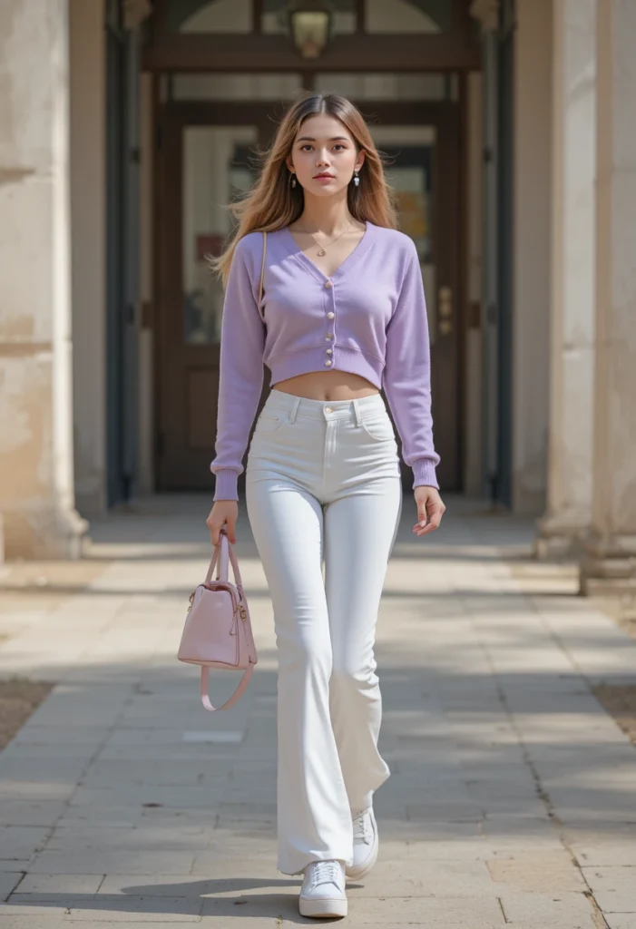 Cropped cardigans are a big trend this year. Match them with flared pants to create a look that’s both cozy and chic. Soft pastel shades like mint, lilac, or baby pink work beautifully for this outfit.