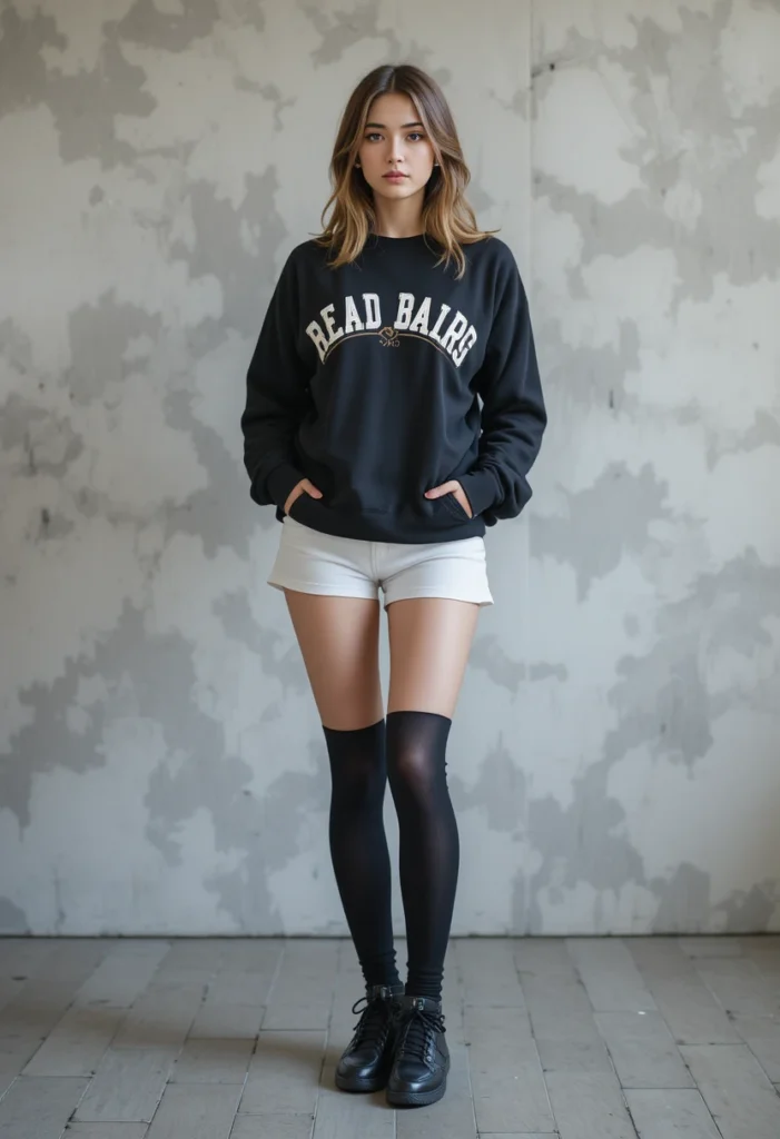 10. Oversized Sweatshirt + Biker Shorts + Socks & Sneakers