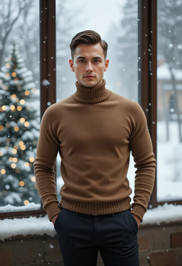 A turtleneck sweater paired with slim-fit trousers is a sleek and stylish look that’s perfect for an upscale holiday gathering. The turtleneck adds a sophisticated element to the outfit, while the slim trousers keep the silhouette sharp. This look is ideal for a more refined Christmas dinner or a holiday celebration that requires a little extra style.
