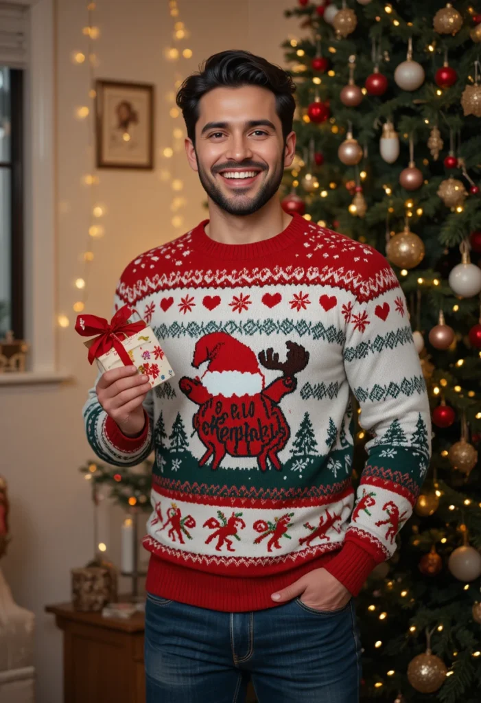 Pair it with chinos for a laid-back yet stylish vibe that’s ideal for family gatherings, office parties, or casual evening celebrations. The soft texture of the sweater will keep you comfortable while still looking polished.
