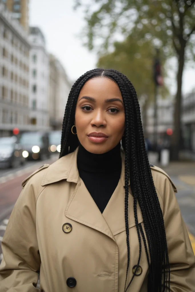 One of the best things about box braids is their versatility. You can choose from a range of lengths and thicknesses to suit your style, whether you want long, dramatic braids or something shorter and more manageable. You can also accessorise them with beads, cuffs, or colourful threads to add a personal touch.