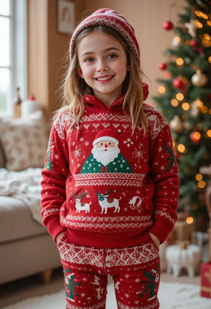Add a pair of comfy slippers or sneakers to complete the look. This cozy Christmas outfit allows your child to enjoy the season without sacrificing comfort, making it ideal for a low-key holiday day at home.