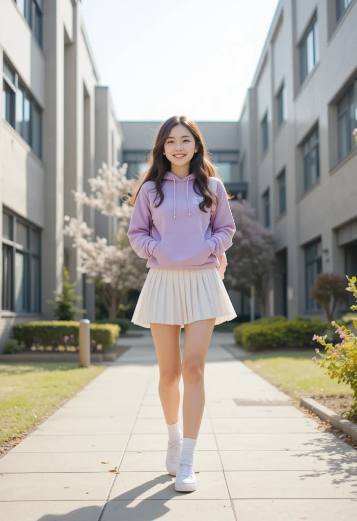 A pastel hoodie paired with a pleated tennis skirt is the definition of sporty-cute. This combo gives a playful school-girl vibe that’s both comfy and trendy. Add white sneakers and ankle socks to finish the look. You can accessorize with a mini backpack or a pastel cap for extra charm. This outfit is perfect for school, hangouts, or casual brunches.