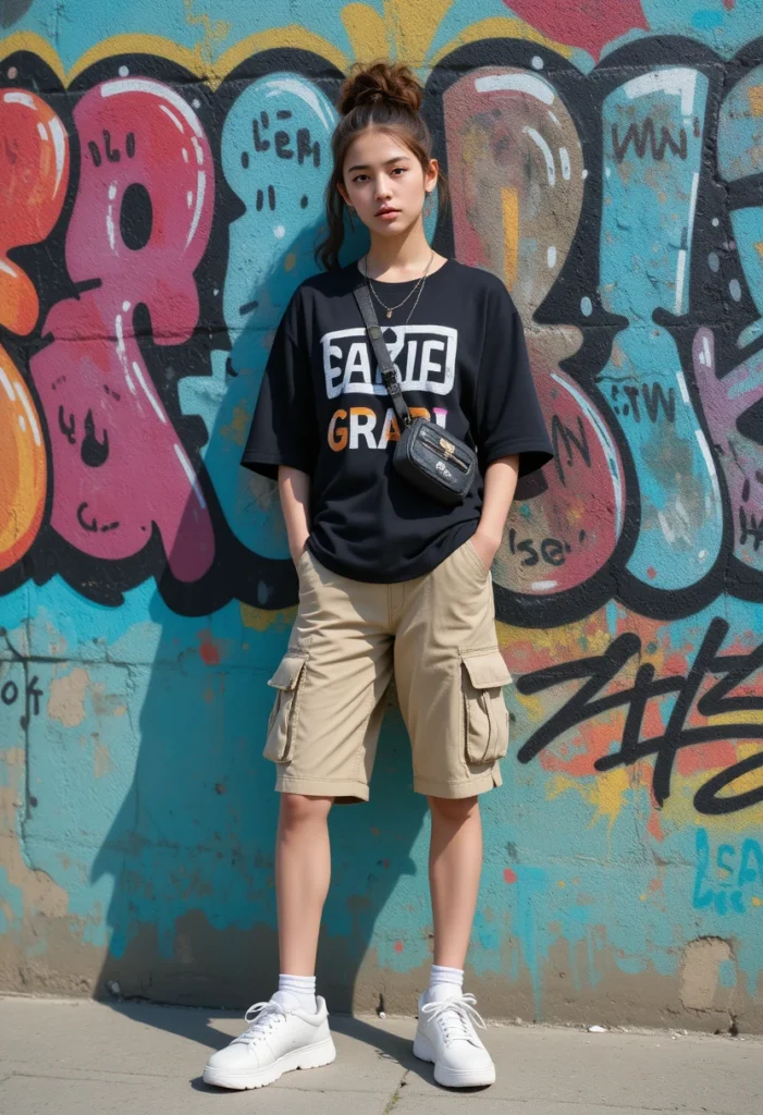 For girls who love streetwear, the graphic tee and cargo shorts duo is a total win. It’s bold, fun, and perfect for everyday wear. Pair it with chunky sneakers and layered necklaces for a confident vibe. Add a crossbody bag or belt bag to elevate your outfit. This look is relaxed yet full of attitude — just like 2025 fashion!