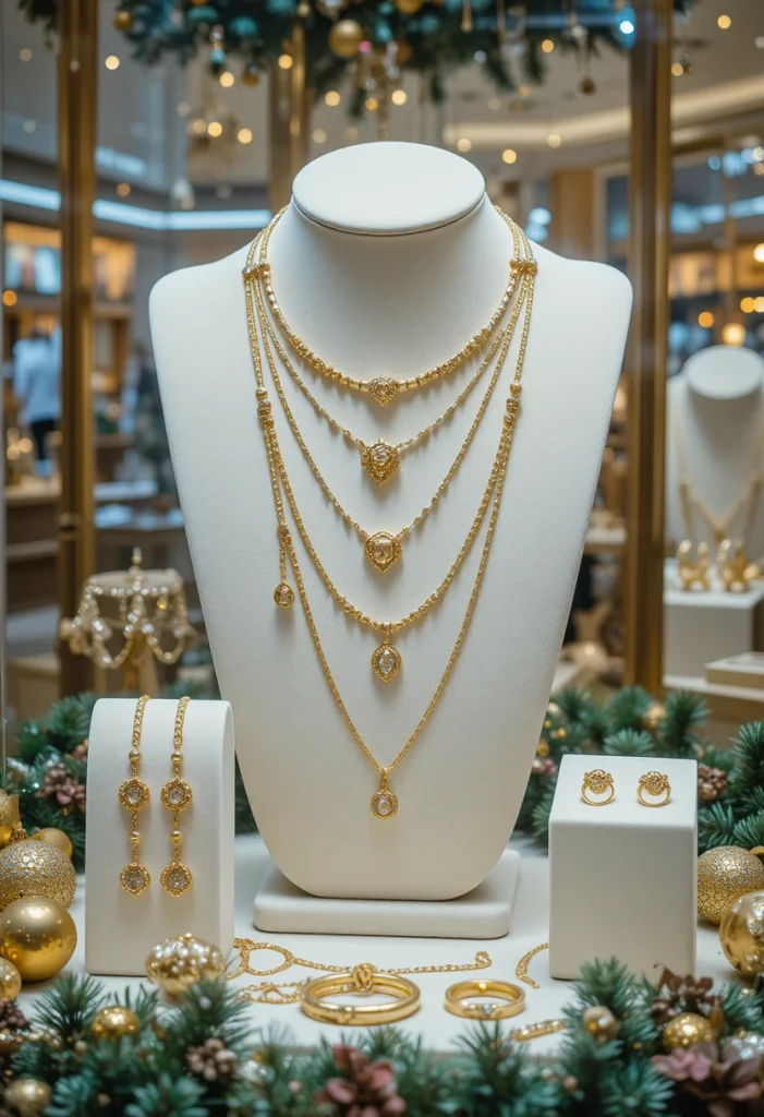 Gold jewelry is one of the easiest ways to make any Christmas outfit look instantly more luxurious. Whether you’re wearing a satin dress, velvet jumpsuit, or a simple sweater-and-skirt combo, gold tones bring warmth and shine that match the festive season. Delicate layered necklaces, thin bracelets, or classy hoop earrings will add just enough sparkle without overpowering the outfit.