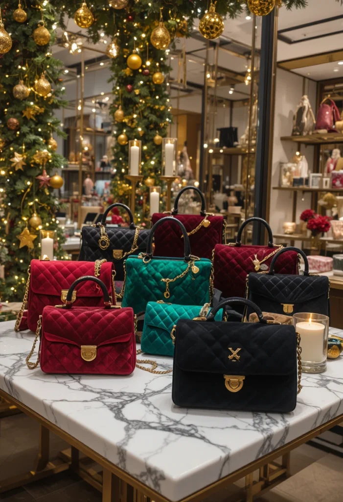 Velvet bags add a smooth, luxurious touch to your Christmas look. Whether it’s a small shoulder bag, a mini clutch, or a crossbody style, the soft velvet texture instantly makes the outfit feel upscale. Colors like emerald green, black, ruby red, and navy work perfectly for the holiday season.