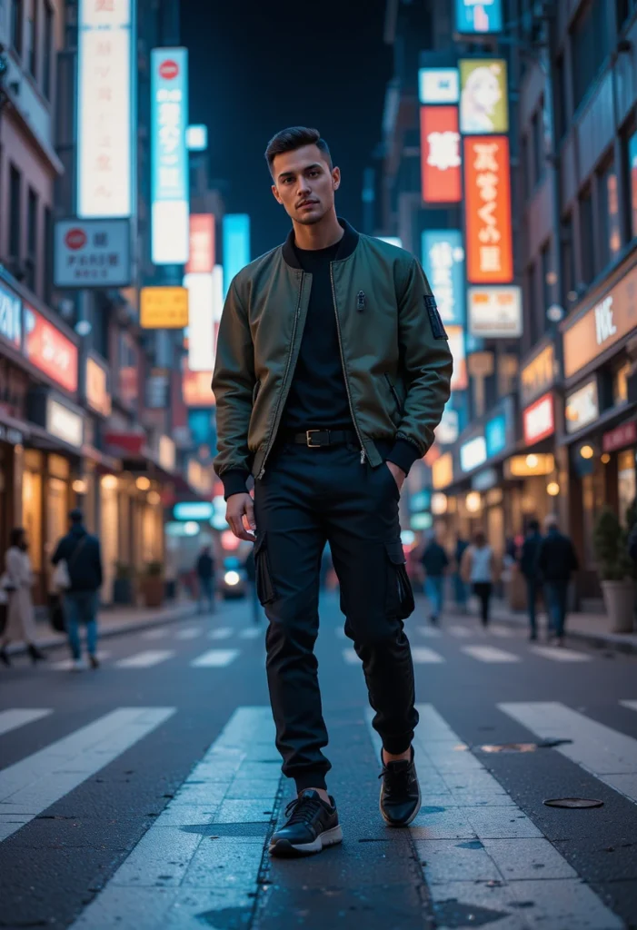 A bomber jacket adds instant character to your outfit. Pair it with cargo pants for a cool, edgy streetwear vibe.