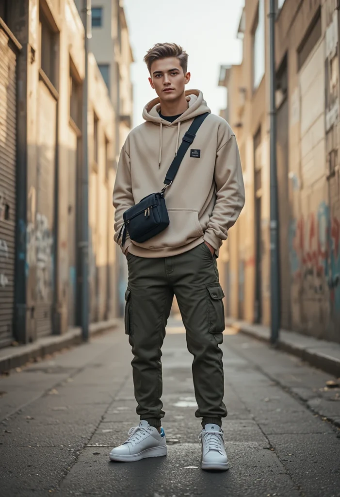 An oversized hoodie paired with cargo pants is a streetwear staple. It’s cozy, relaxed, and looks great on all body types. Choose neutral tones like beige, grey, or olive for a trendy, laid-back vibe.
