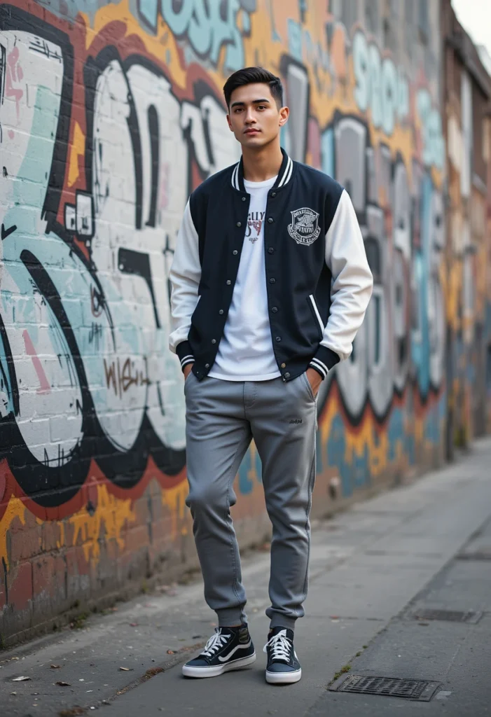The varsity jacket is back in 2025 — classic, bold, and stylish. Pair it with sweatpants for that sporty, college-inspired streetwear vibe.