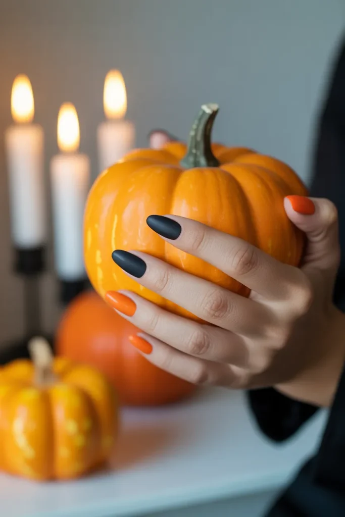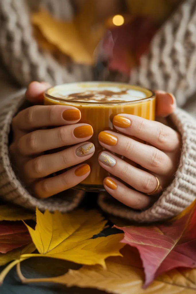 Bonus idea: Combine pumpkin orange with a creamy beige base for a soft gradient that feels warm and festive — like a latte in nail form.