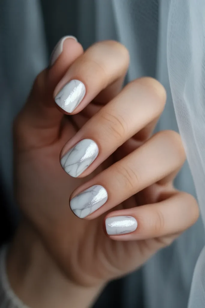 White marble nails with ghostly undertones are one of the most elegant yet eerie trends this year. Think subtle grey swirls, soft shimmer, and tiny ghost decals for that “haunted mansion chic” vibe. These nails are classy enough for daily wear yet festive enough for Halloween events.